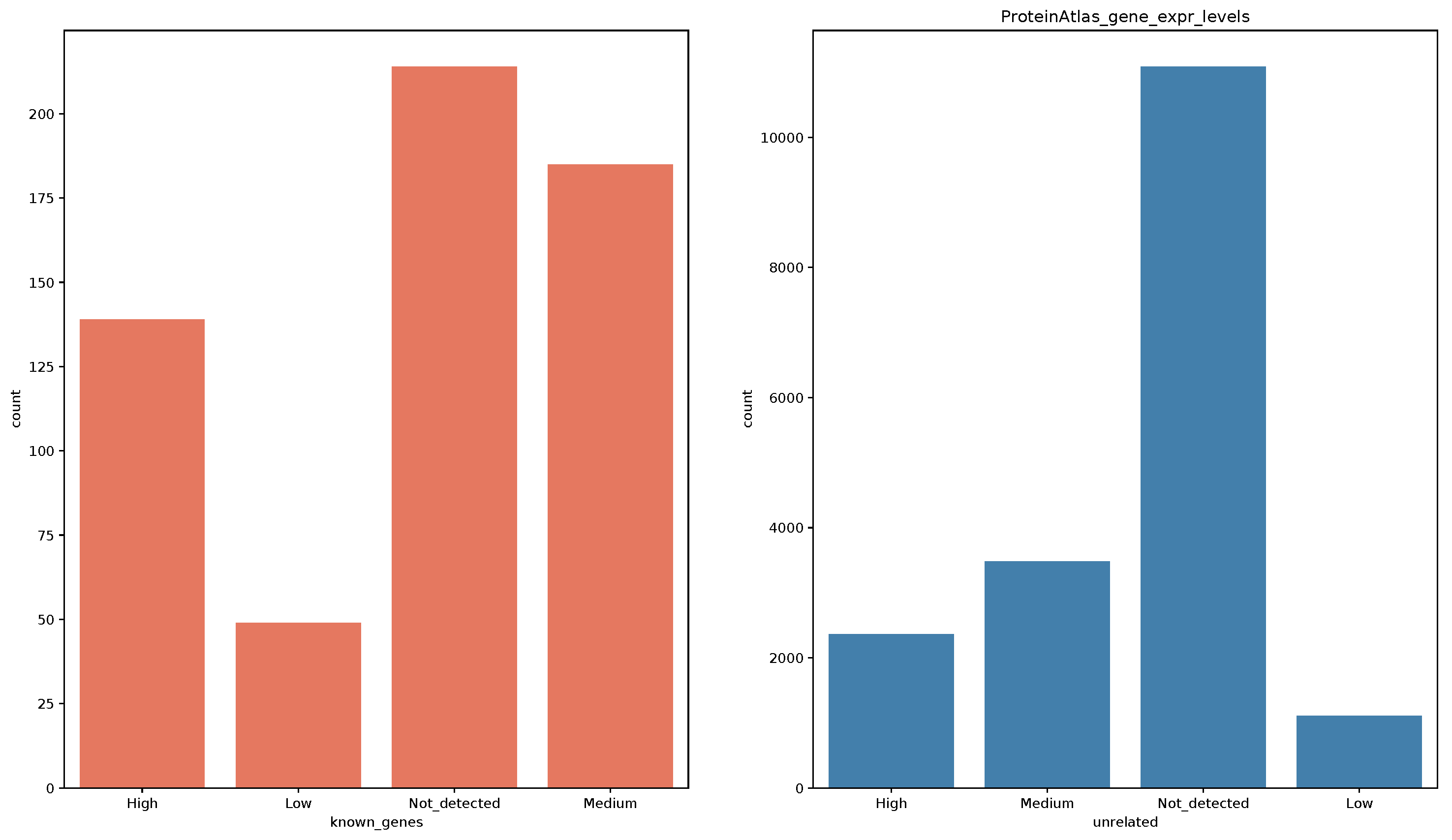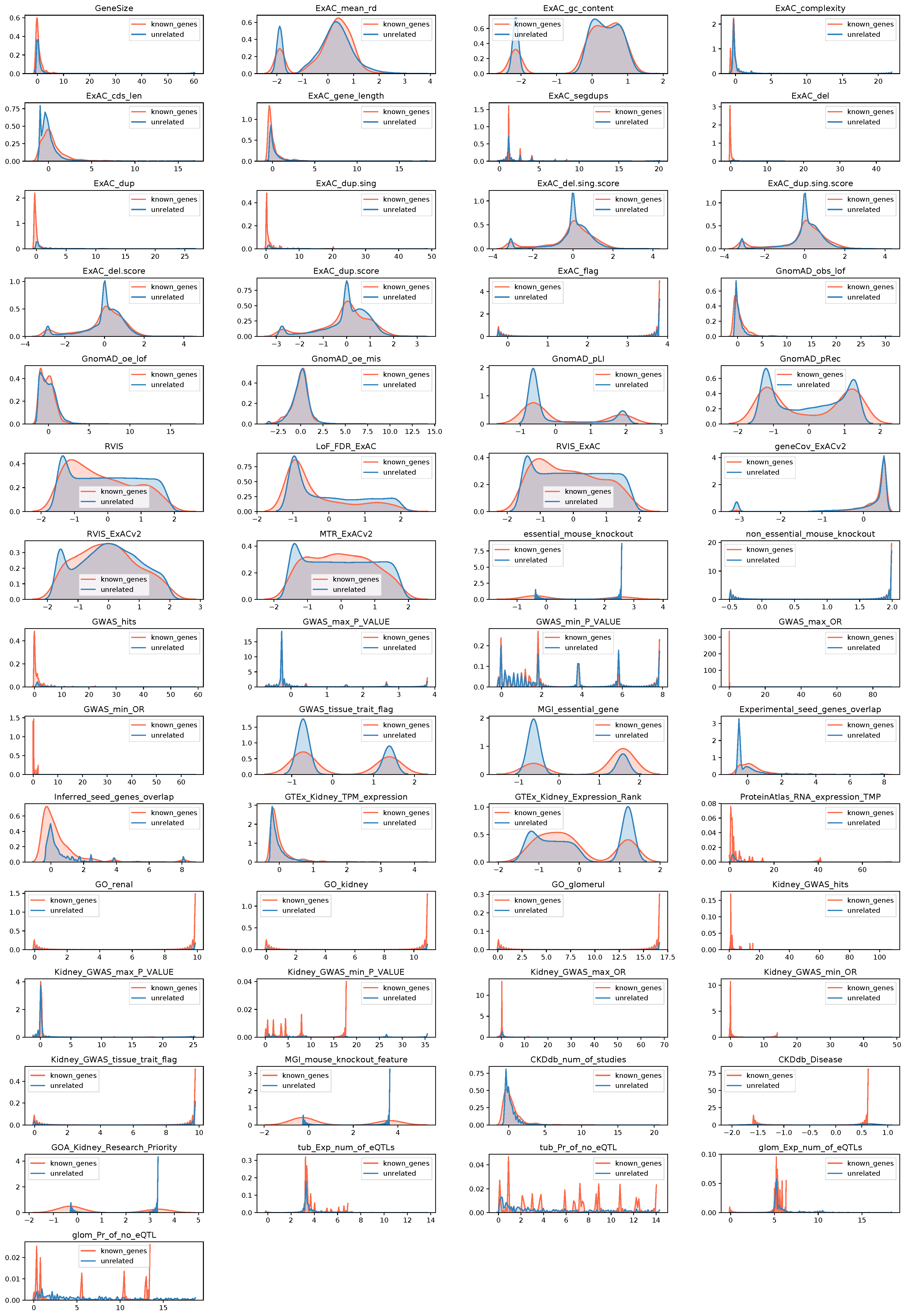 (distribution across known/seed and unrelated/unknown genes)