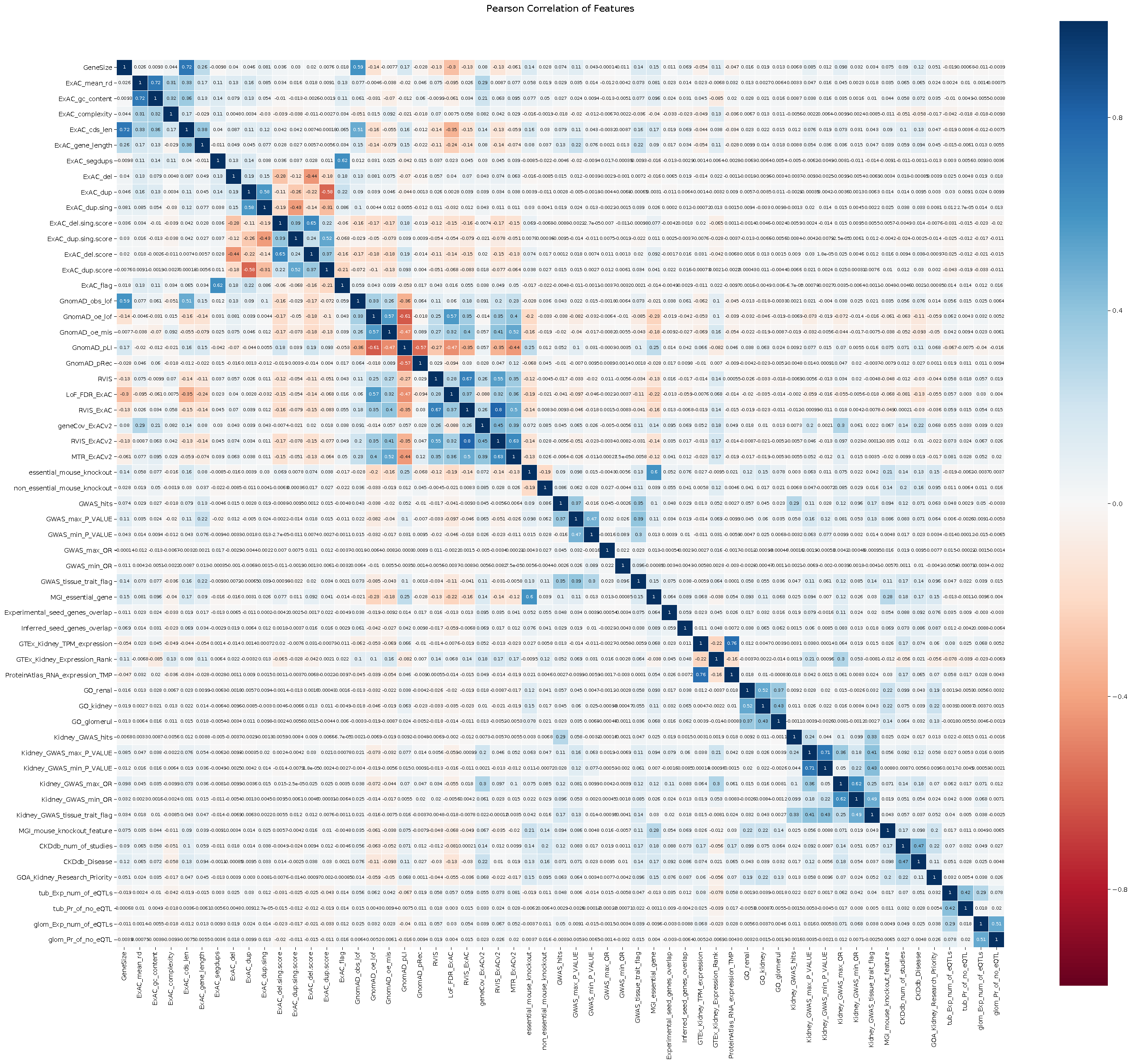 Feauture correlations (prior to filtering of highly-correlated features)