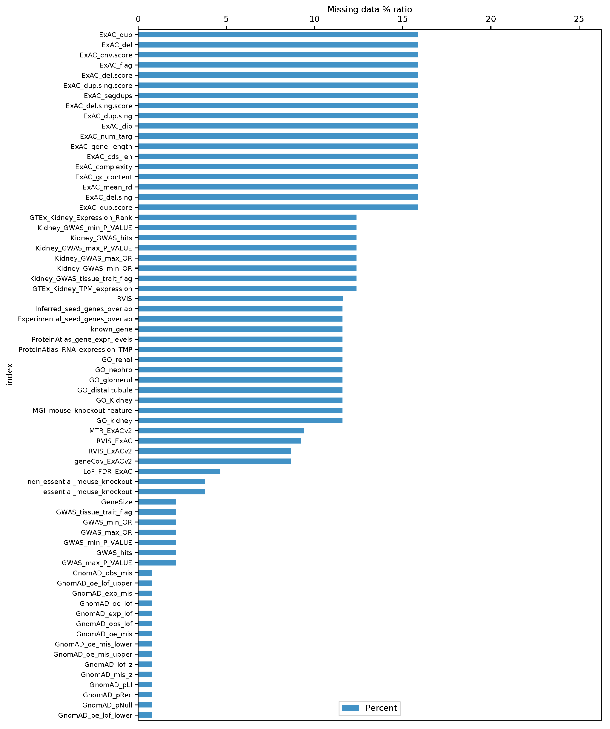 Missing data ratios (post-filtering of highly-correlated features)