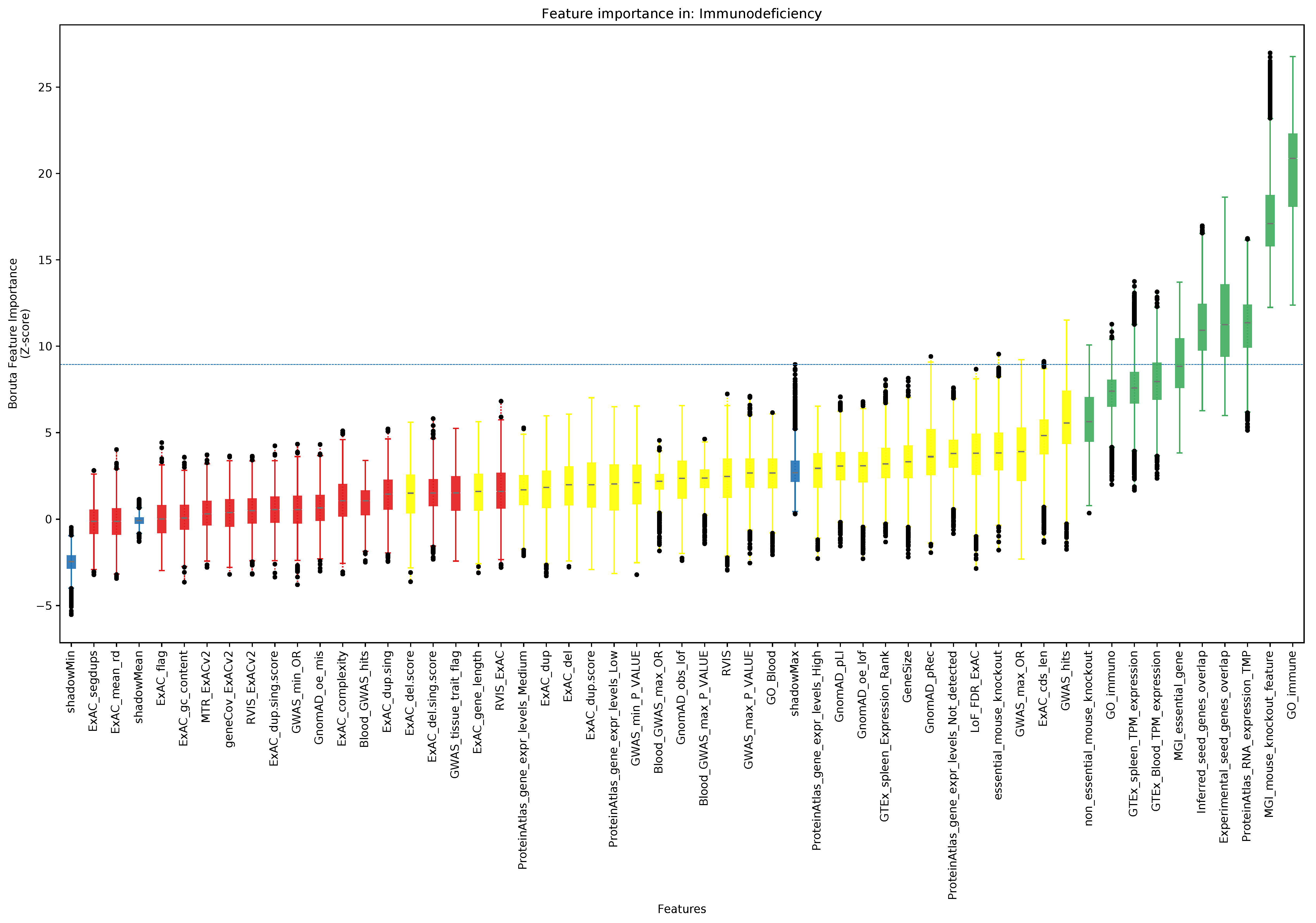 This section contains the feature importance scores as extracted by the Boruta algorithm.